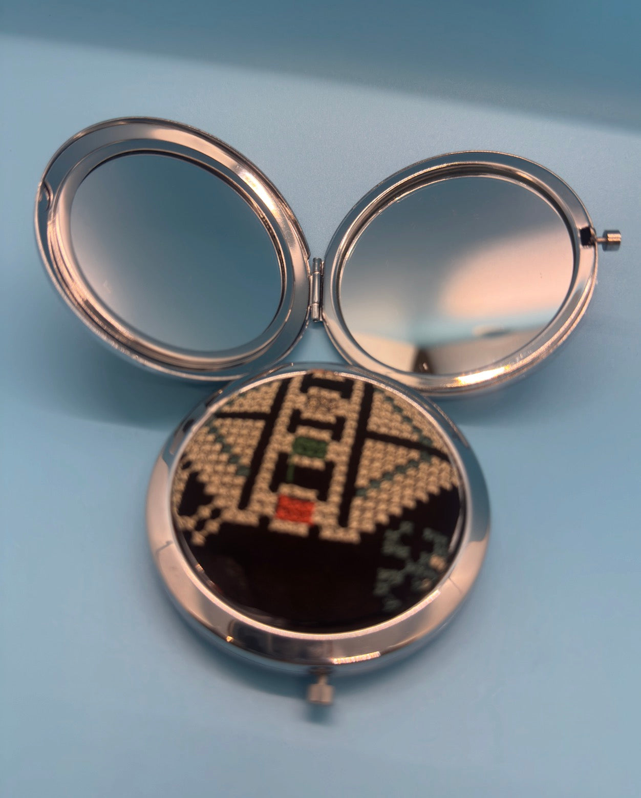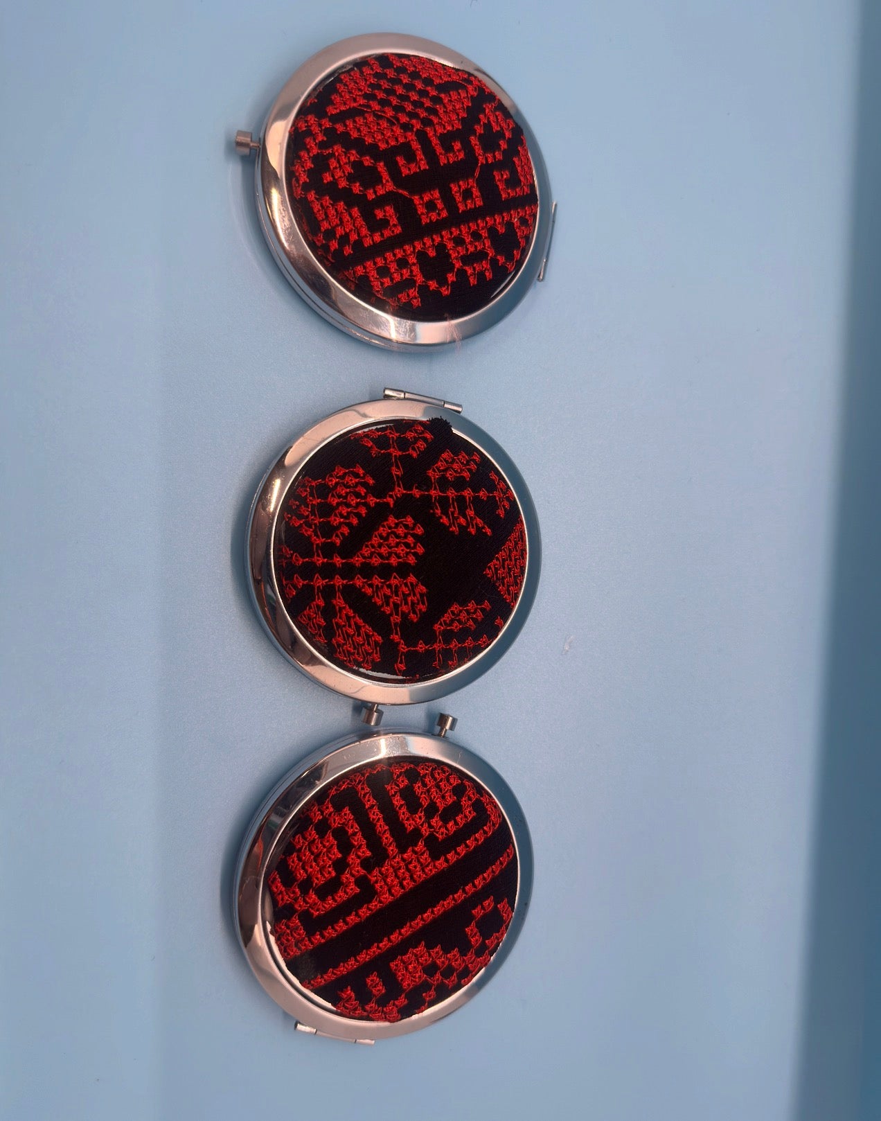 Each mirror features Tatreez embroidery — the ancient Palestinian art form passed through generations of women. Every pattern symbolizes strength, beauty, and identity — turning a daily accessory into a meaningful expression of culture.